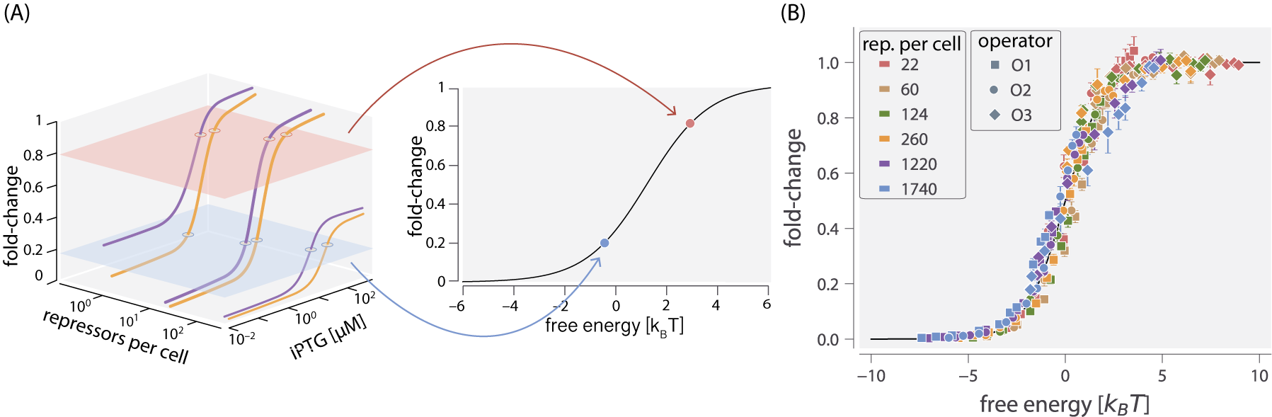 \text{fold-change} = \frac{1}{1 + \frac{r}{\neg r}} = \frac{1}{1 + e^{-\beta F}}