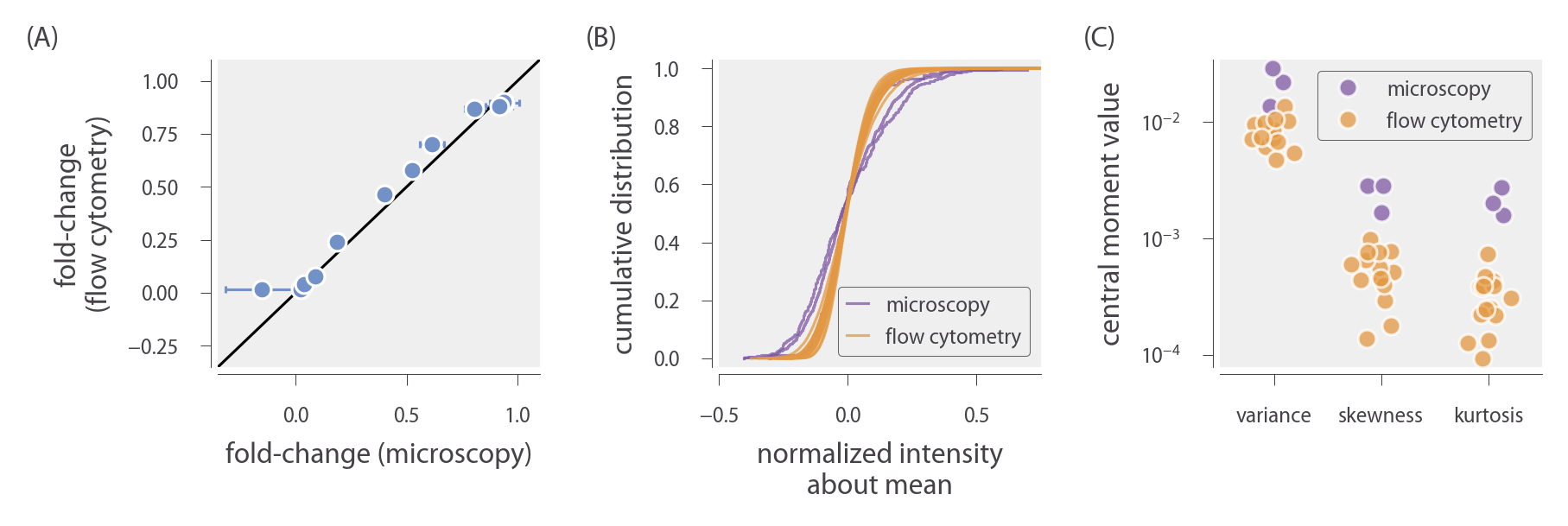 In this section, we provide information regarding the equipment used to make experimental measurements of the fold-change in gene expression in the interests of transparency and reproducibility. We also provide a summary of our unsupervised method of gating the flow cytometry measurements for consistency between experimental runs.