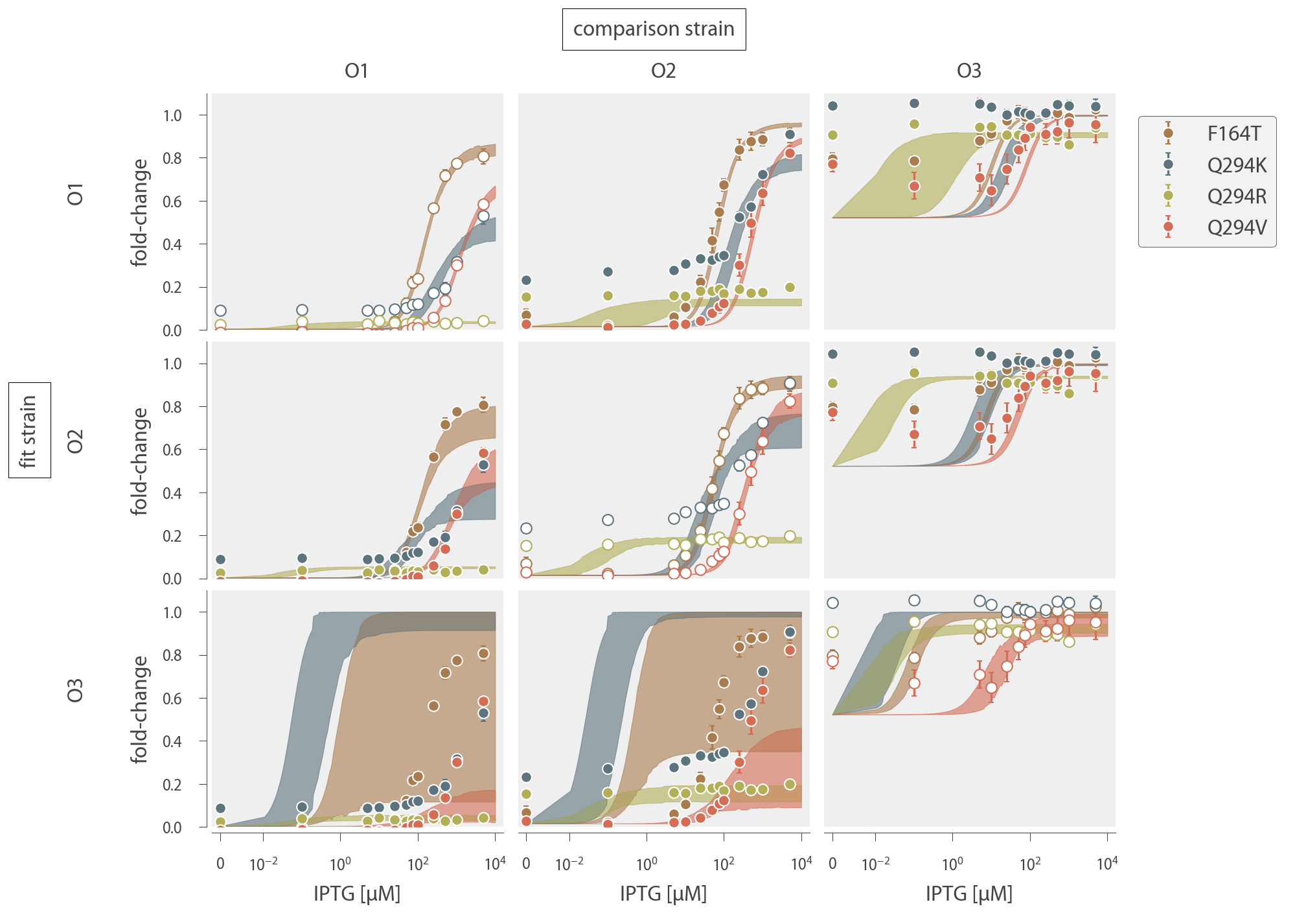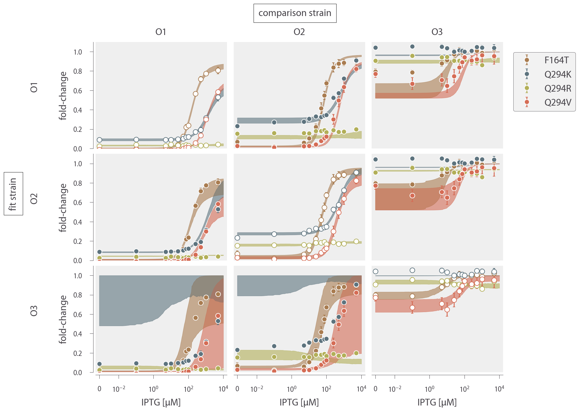 | Q291V | O1 | 260 | MG1655::ΔlacIZYA; galK<>25O1+11-YFP; ybcN<>3*1-RBS1027LacI(Q291V) |