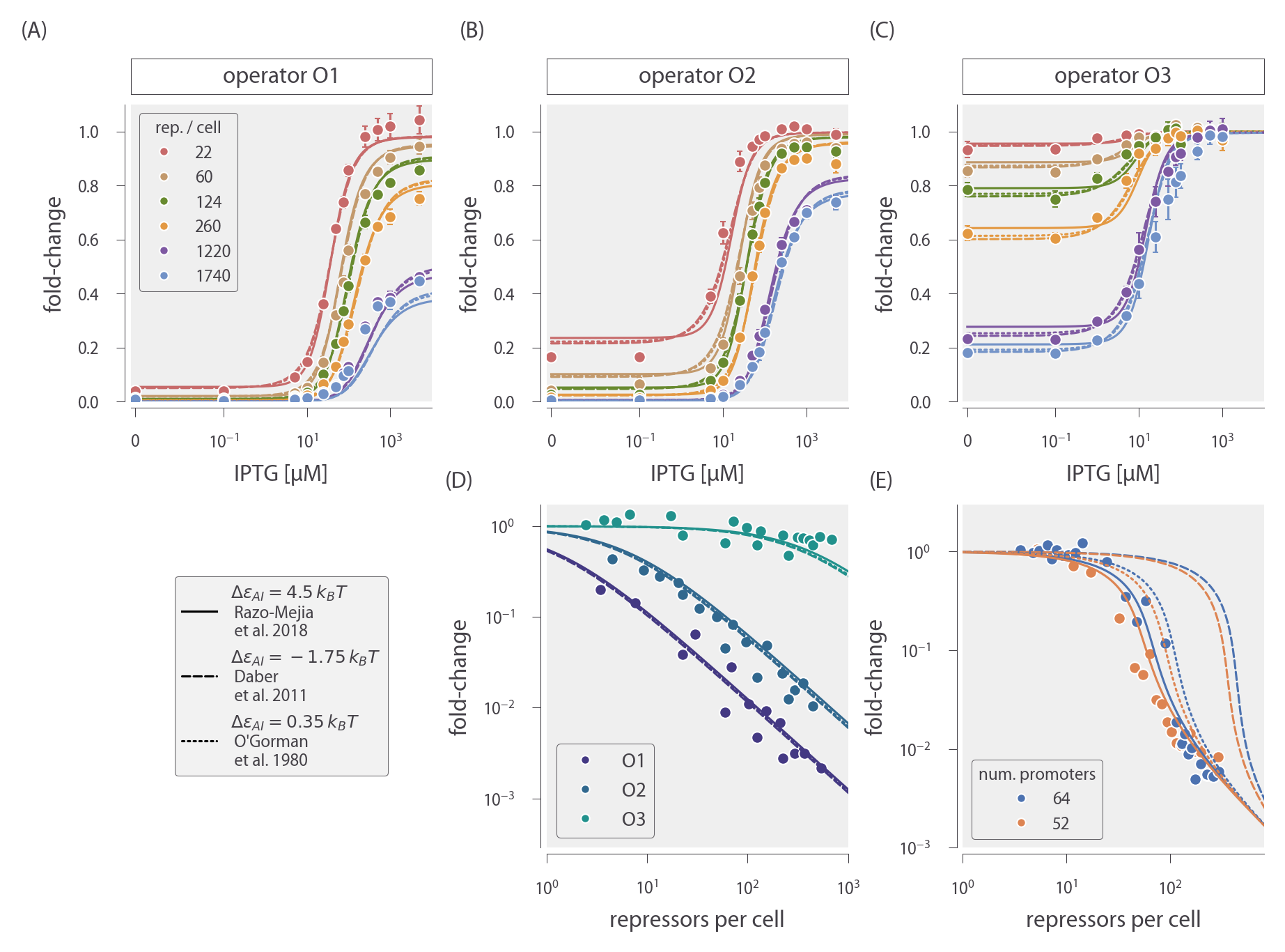 Garcia, H. G., and R. Phillips. 2011. “Quantitative Dissection of the Simple Repression Input-Output Function.” Proceedings of the National Academy of Sciences 108 (29): 12173–8. https://doi.org/10.1073/pnas.1015616108.