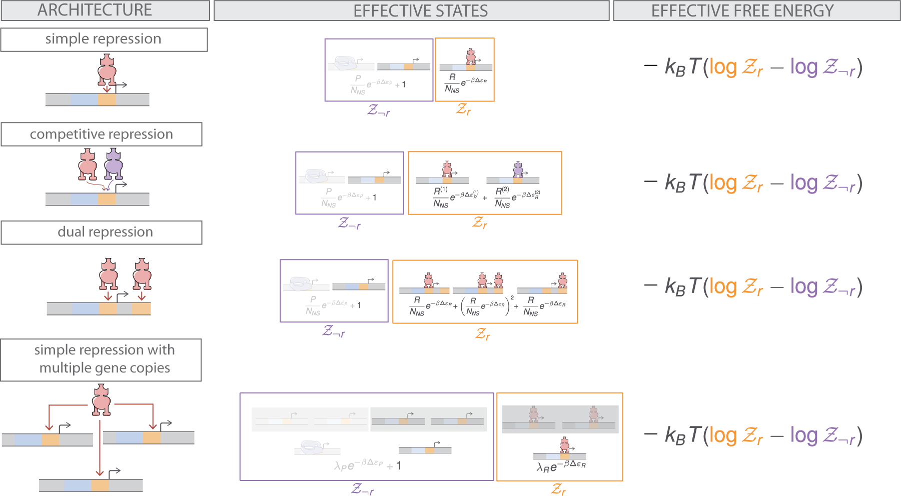 \text{fold-change} = {e^{-\beta \tilde{F}_{\neg r}} \over e^{-\beta \tilde{F}_{\neg r}} + e^{-\beta\tilde{F}_r}}.