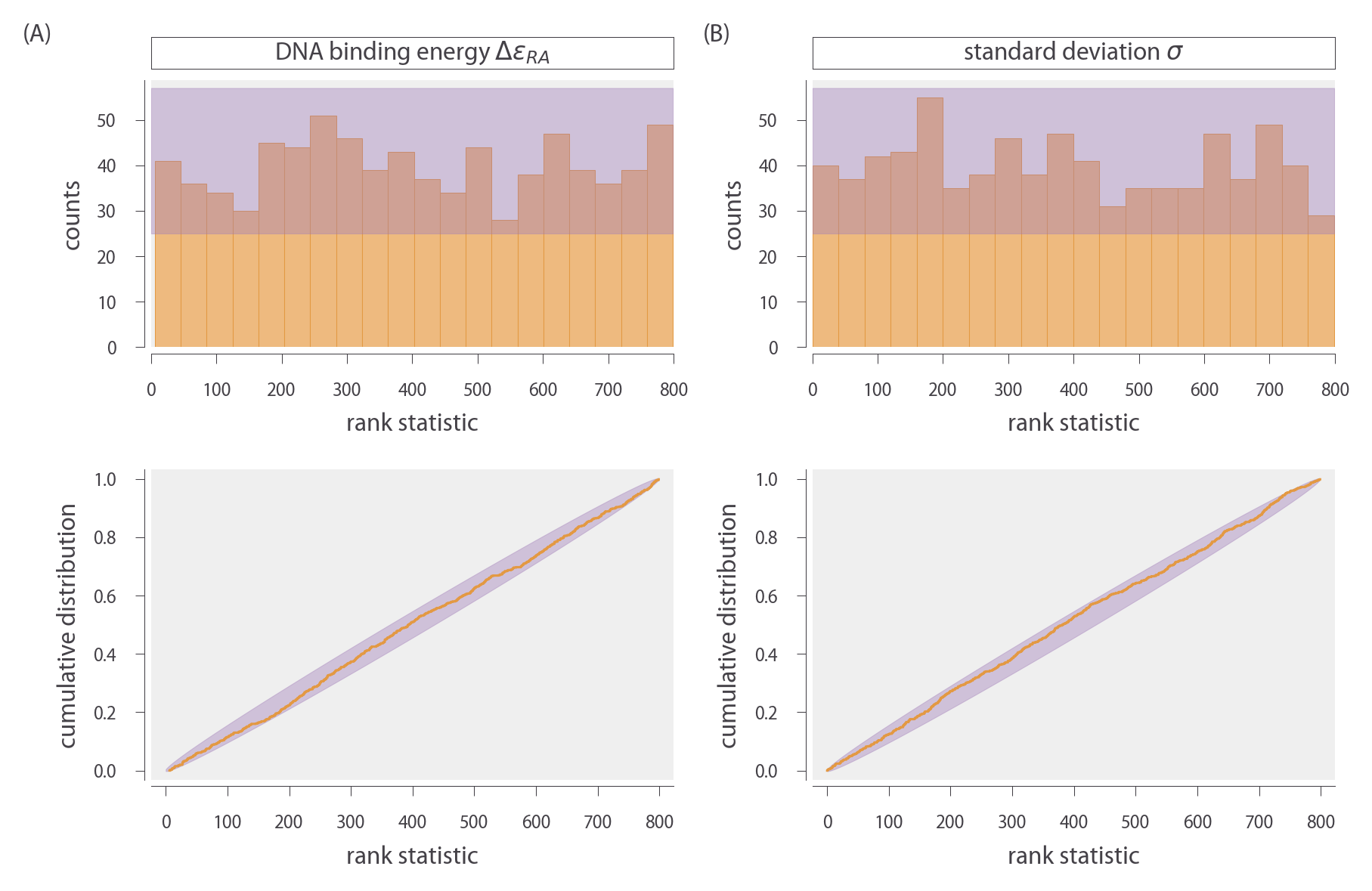 The second subsection Building a Generative Statistical Model lays out the statistical model used in this work to estimate the DNA binding energy and the error term σ. The subsequent subsections – Prior Predictive Checks, Simulation Based Calibration, and Posterior Predictive Checks – define and summarize a series of tests that ensure that the parameters of the statistical model can be identified and are computationally tractable. To understand how we defined our statistical model, only the second subsection is needed.